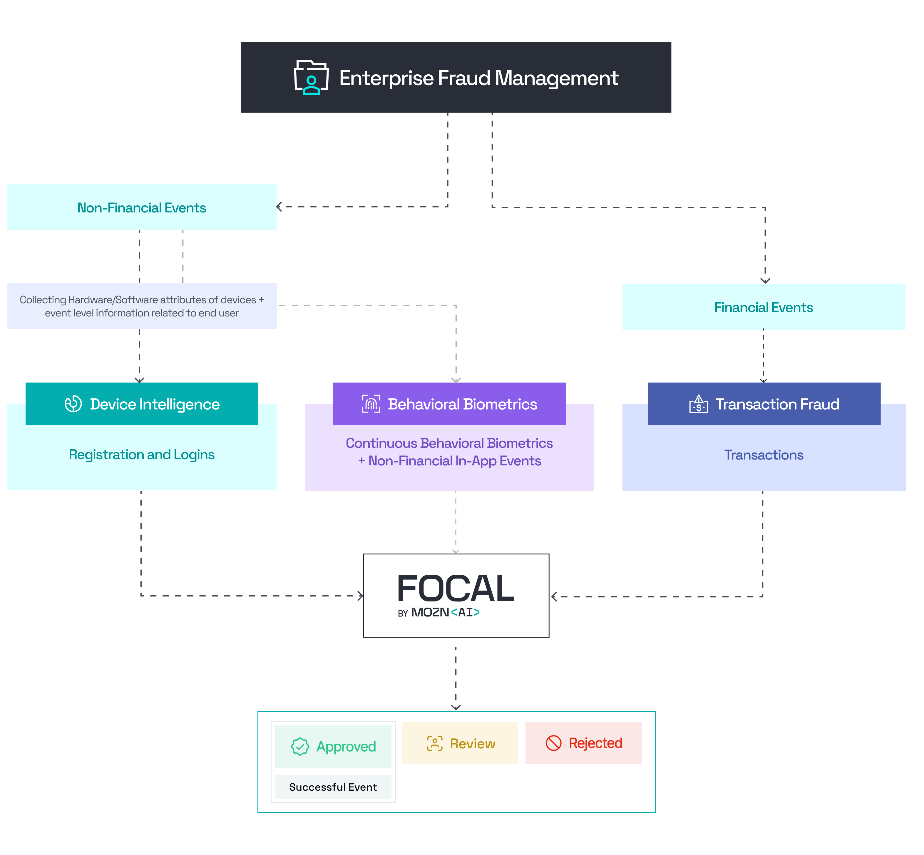 FOCAL unifies device, behavioral, and transaction intelligence into one end‑to‑end platform, giving businesses the ability to detect, prevent, and respond to fraud at every stage of the customer journey.